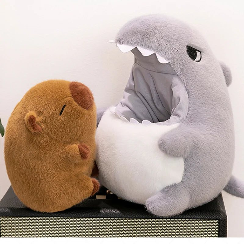 Le Combo Parfait : Douceur Capybara et Fun Requin en Une Seule Peluche !