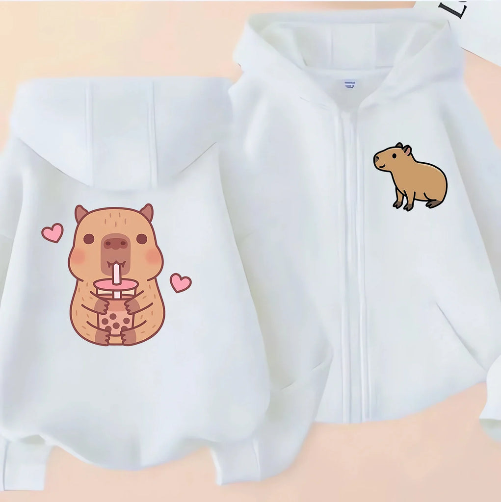 Transforme ton petit aventurier en véritable fan de capybara avec ce pull à capuche blanc ultra-doux qui lui donnera un style kawaii irrésistible !